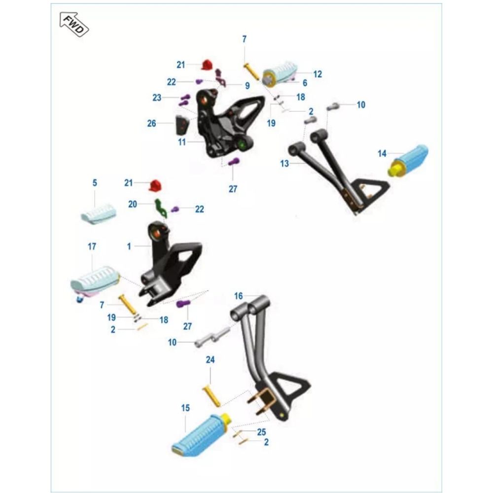 Estribos, reposapies y paradores - BOXER 100 (del 2021 al 2022)